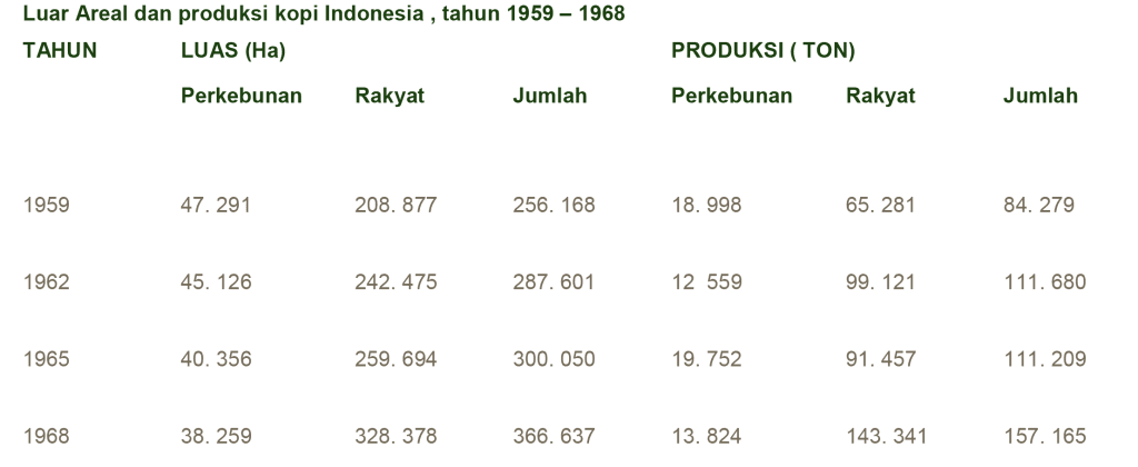 Produksi kopi di Jawa mengalami peningkatan yang cukup siginificant, tahun 1830 – 1834 produksi kopi Arabika mencapai 26.600 ton, dan 30 tahun kemudian meningkat menjadi 79.600 ton dan puncaknya tahun 1880 -1884 mencapai 94.400 ton.